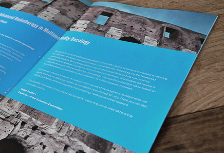 Resultaat?Een conferentie over Radiotherapy en brachytrerapy zijn natuurlijk complexe zware onderwerpen. Het boekje geeft de sfeer van Rome weer en eigenlijk niet zozeer de geavanceerde apparaten of de zieke mensen. De text maakt het duidelijk, maar geeft het ook een fris en niet te zwaar tintje. |